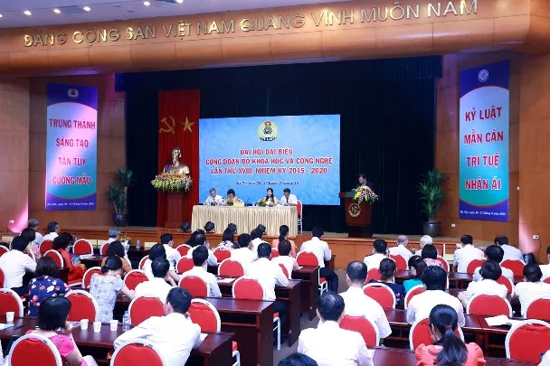 Trong 2 ngày 26-27/6/2015, tại Hà Nội, Công đoàn Bộ Khoa học và Công nghệ (KH&CN) tổ chức Đại hội Đại biểu Công đoàn Bộ Khoa học và Công nghệ lần thứ XVIII, nhiệm kỳ 2015-2020.Toàn cảnh Đại hội Đại biểu Công đoàn Bộ Khoa học và Công nghệ lần thứ XVIII, nhiệm kỳ 2015-2020.Tham dự Đại hội về phía Lãnh đạo Bộ KH&CN có đồng chí Nguyễn Quân, Ủy viên Ban Chấp Hành Trung ương Đảng, Bộ trưởng Bộ KH&CN; đồng chí Trần Văn Tùng - Bí thư Đảng ủy Bộ KH&CN, Thứ trưởng Bộ KH&CN; đồng chí Trần Việt Thanh, Thứ trưởng Bộ KH&CN; đồng chí Trần Quốc Khánh, Thứ trưởng Bộ KH&CN