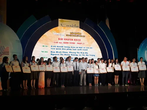 Đã có 5 công trình nghiên cứu của giải thưởng sinh viên nghiên cứu khoa học Euréka được chuyển giao cho các đơn vị, doanh nghiệp trên địa bàn TP.HCM ứng dụng vào thực tế.Xuất hiện nhiều đề tài thiết thực tại Giải thưởng Eureka 2016.Lần đầu tiên, giải thưởng Eureka mở rộng cho sinh viên toàn quốc.Cuộc thi “Ý tưởng khởi nghiệp” 2016: Các ứng dụng về du lịch bội thu giải thưởng.Sáng 11/12, tại Nhà văn hóa Thanh niên TP.HCM, Thành đoàn phối hợp với ĐHQG TP.HCM tổ chức Lễ tổng kết và trao giải thưởng sinh viên nghiên cứu khoa học Euréka danh cho các công trình nghiên cứu khoa học xuất sắc.Giải thưởng Euréka là giải thưởng nghiên cứu khoa học dành cho sinh viên yêu thích nghiên cứu khoa học trong các trường ĐH.Cuộc thi được tổ chức thường niên nhằm tìm kiếm các công trình nghiên cứu khoa học mang tính ứng dụng của sinh viên, ươm mầm những tài năng nghiên cứu trẻ.Điểm đặc biệt của cuộc thi năm nay, lần đầu tiên quy mô cuộc thi được mở rộng ra toàn quốc.Theo anh Lâm Đình Thắng, Phó Bí thư Thành đoàn, Chủ tịch Hội sinh viên TP.HCM, với quy mô mở rộng hơn, sẽ tạo điều kiện cho sinh viên giao lưu học hỏi, học tập kinh nghiệm nghiên cứu lẫn nhau.“Đồng thời, với việc mở rộng ra quy mô toàn quốc, cuộc thi có tính cạnh tranh cao hơn.Điều đó đã trở thành động lực cho các bạn sinh viên có những công trình nghiên cứu tốt hơn”- anh Thắng cho biết.Tại cuộc thi năm nay, Ban tổ chức đã tiến hành chuyển giao 5 công trình nghiên cứu của sinh viên, ứng dụng trong các đơn vị, doanh nghiệp tại TP.HCM bao gồm: Hệ thống pha chế coktail tự động (ĐH Duy Tân Đà Nẵng); Hiệu quả cải thiện vệ sinh răng miệng của mô hình tích hợp âm nhạc trong hướng dẫn chải răng cho học sinh tiểu học 9-10 tuổi (ĐH y dược TP.HCM); Thử nghiệm một số biện pháp nâng đỡ cảm xúc cho trẻ bị lạm dụng tình dục (ĐH sư phạm TP.HCM); Nghiên cứu chế tạo thử nghiệm bê tông rỗng thoát nước, sử dụng cho vỉa hè và các công trình giao thông nội bộ (ĐH giao thông vận tải TP.HCM); Nghiên cứu thành lập chương trình xử lý số liệu quan trắc và dự báo độ lún công trình (ĐH mỏ địa chất Hà Nội).Giải thưởng Euréka: 5 công trình nghiên cứu được chuyển giao ứng dụng - 1.Các nhóm sinh viên tham dự cuộc thi nhận giải thưởng.Ảnh: Hà Thế An