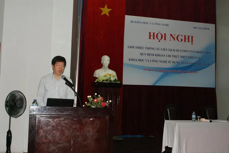 Bộ KH&CN vừa tổ chức giới thiệu Thông tư số 27/2015/TTLT/BKHCN-BTC quy định khoán chi thực hiện nhiệm vụ KH&CN sử dụng ngân sách nhà nước tới các các cơ quan nghiên cứu khoa học tại Thành phố Hồ Chí Minh.Tại hội nghị, các thắc mắc như mở tài khoản dự toán tại Kho bạc Nhà nước, cách xử lý các sản phẩm trung gian không đạt yêu cầu, các đề tài được duyệt trước khi có Thông tư 27,… của các đại biểu đã được Bộ Tài Chính và Bộ Khoa học và Công nghệ giải đáp cụ thể.Thứ trưởng Trần Quốc Khánh phát biểu tại Hội nghị