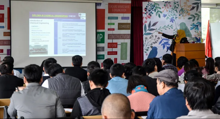 Trình bày hai vấn đề hoàn toàn khác nhau nhưng cả GS.Salmiah Kasolang – Trưởng khoa Cơ học Kỹ thuật – ĐH Công nghệ MARA (Maylaysia) và TS.Phạm Thị Ly – ĐH QG TP.HCM, ĐH Nguyễn Tất Thành đều chia sẻ những thực tế nhận thấy được ở nền giáo dục nước ngoài với mong muốn áp dụng ưu điểm của nó tại Việt Nam.Hành trình CDIO: Kỳ vọng lan tỏa và ứng dụng.Với vai trò trưởng khoa tại khoa Cơ học Kỹ thuật – Đại học Công nghệ MARA (Maylaysia), GS.Salmiah Kasolang luôn trăn trở với việc làm sao để khơi nguồn cảm hứng trong đổi mới và nâng cao chất lượng giáo dục đại học từ đó phát triển nguồn nhân lực của quốc gia một cách chiến lược và bền vững.Bà là một trong những người tham gia khởi xướng CDIO tại Đại học Công nghệ MARA– một giải pháp nâng cao chất lượng đào tạo đáp ứng yêu cầu xã hội trên cơ sở xác định chuẩn đầu ra để thiết kế chương trình, phương pháp giảng dạy và đánh giá theo một quy trình khoa học tại MARA.GS.Salmiah Kasolang chia sẻ về hành trình CDIO tại ĐH Công nghệ MARA – nơi mình đang công tác.Ảnh: Anh Khoa và Tuấn Duy