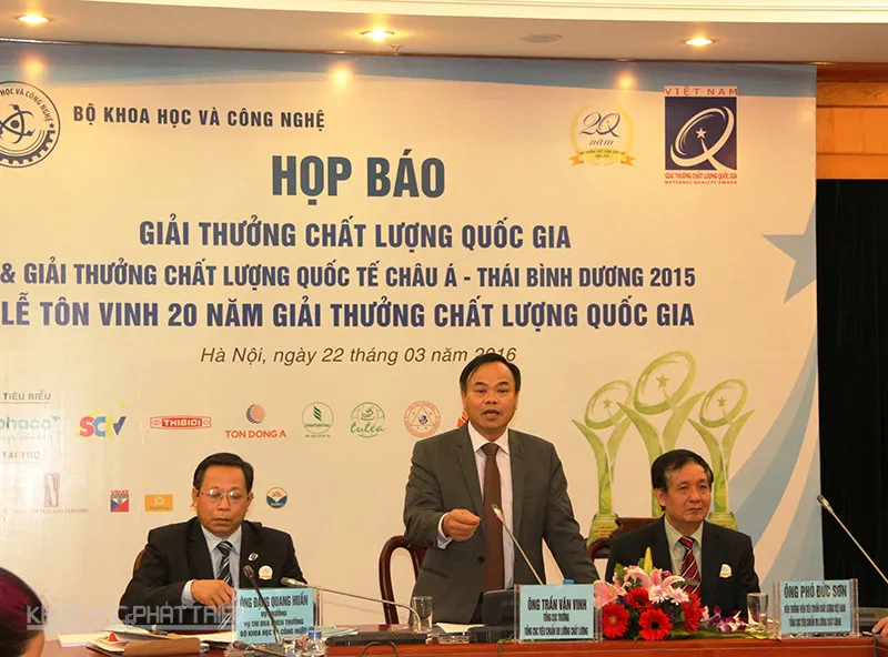 77 doanh nghiệp này đã trải qua hai vòng đánh giá, thẩm định và sẽ được chính thức trao giải vào ngày 10/4 tới.Thông tin trên được đưa ra tại buổi họp báo diễn ra vào sáng 22/3 tại Hà Nội.Theo đó Giải thưởng Chất lượng Quốc gia và Giải thưởng Chất lượng quốc tế châu Á-Thái Bình Dương 2015 (GPEA) đã xác định được 80 doanh nghiệp (DN) trao giải, trong đó có 20 DN được trao Giải Vàng Chất lượng Quốc gia; 57 DN được trao giải Bạc và 3 DN được trao giải GPEA.Ông Trần Văn Vinh, Tổng Cục trưởng Tổng Cục Tiêu chuẩn Đo lường Chất lượng (Bộ Khoa học và Công nghệ) cho hay, ngày 26/2, Thủ tướng Chính phủ đã ký Quyết định số 311 QĐ-TTg về việc trao tặng giải thưởng cho 77 doanh nghiệp sau khi các đơn vị này đã trải qua 2 vòng đánh giá, thẩm định của Hội đồng sơ tuyển cấp tỉnh, thành phố và Hội đồng quốc gia gồm đại diện các bộ, ngành, tổ chức liên quan.Trong số này ba doanh nghiệp được GPEA trao giải gồm Công ty cổ phần Tập đoàn Thiên Long; Công ty trách nhiệm hữu hạn một thành viên Du lịch Dịch vụ Dầu khí Việt Nam OSCVN và Công ty trách nhiệm hữu hạn Nam Dược.Ông Trần Văn Vinh - Tổng cục Trưởng Tổng cục Tiêu chuẩn Đo lường - Chất lượng phát biểu tại buổi họp báo