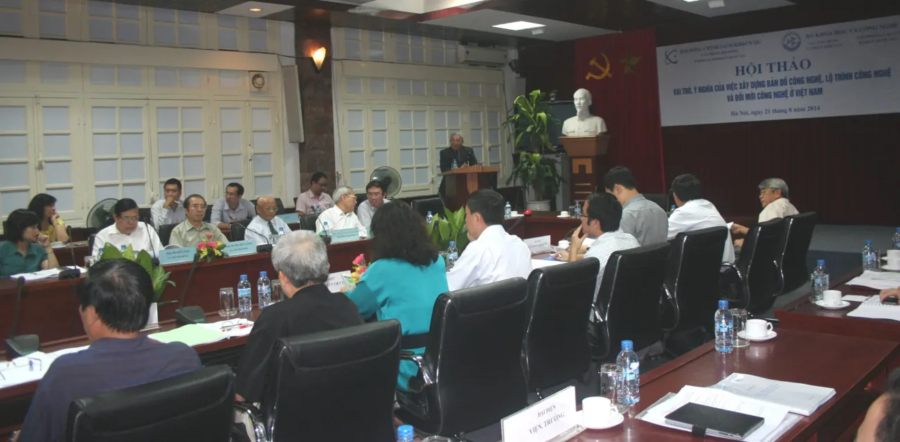 Chủ tịch Hội đồng Chính sách KH&CN quốc gia Hoàng Văn Phong phát biểu tại Hội thảo.Việc xây dựng bản đồ công nghệ, lộ trình công nghệ và đổi mới công nghệ được coi là lực đẩy quan trọng giúp doanh nghiệp phát triển năng lực của mình