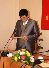 Đ/c Nguyễn Thị Thu Hà - Giám đốc NXB báo cáo kết quả hoạt động năm 2009 và phương hướng nhiệm vị năm 2010 của Nhà xuất bản...