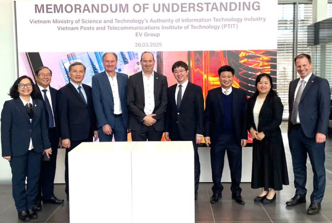 Ngày 26/3, Chủ nhiệm Ủy ban Khoa học, Công nghệ và Môi trường của Quốc hội Lê Quang Huy cùng Đoàn công tác của Bộ Khoa học và Công nghệ do Thứ trưởng Bùi Hoàng Phương làm Trưởng đoàn đã chứng kiến Lễ ký bản ghi nhớ hợp tác giữa Cục Công nghiệp Công nghệ Thông tin và Học viện Công nghệ Bưu chính Viễn thông (PTIT) với Tập đoàn EVGroup. Đây là tập đoàn hàng đầu thế giới trong công nghệ liên kết wafer cho chip 3D và cảm biến, chuyên cung cấp thiết bị cho sản xuất bán dẫn.